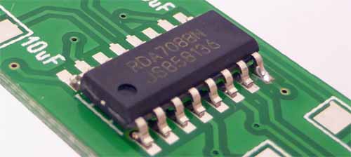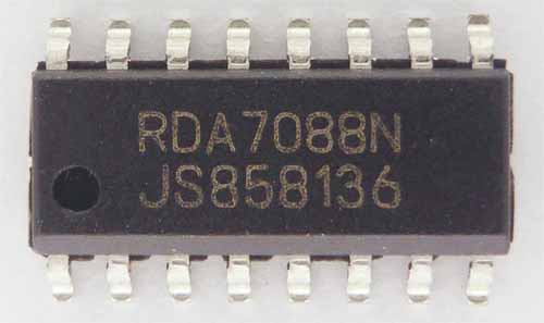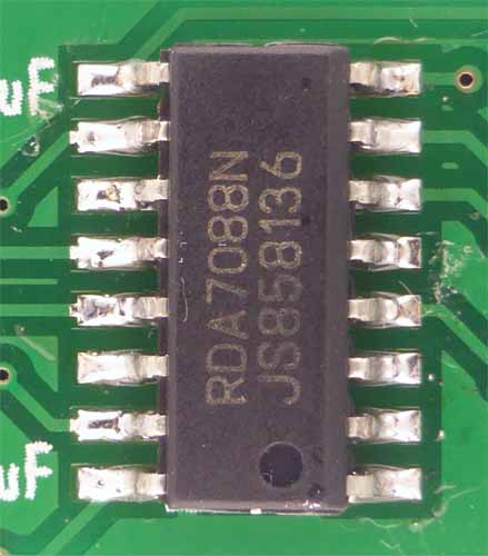 位置決めをしながら一ヵ所(8番ピン)をハンダ付けしました。 【 Step1−1 RDA7088取付け(仮付け) 】