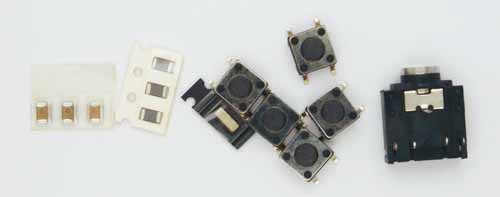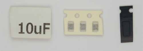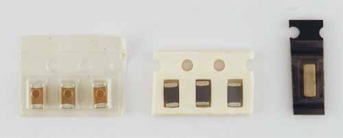 左からセラミックキャパシタ・インダクタ・水晶振動子です。 【 部品パッケージ チップ部品(表面) 】