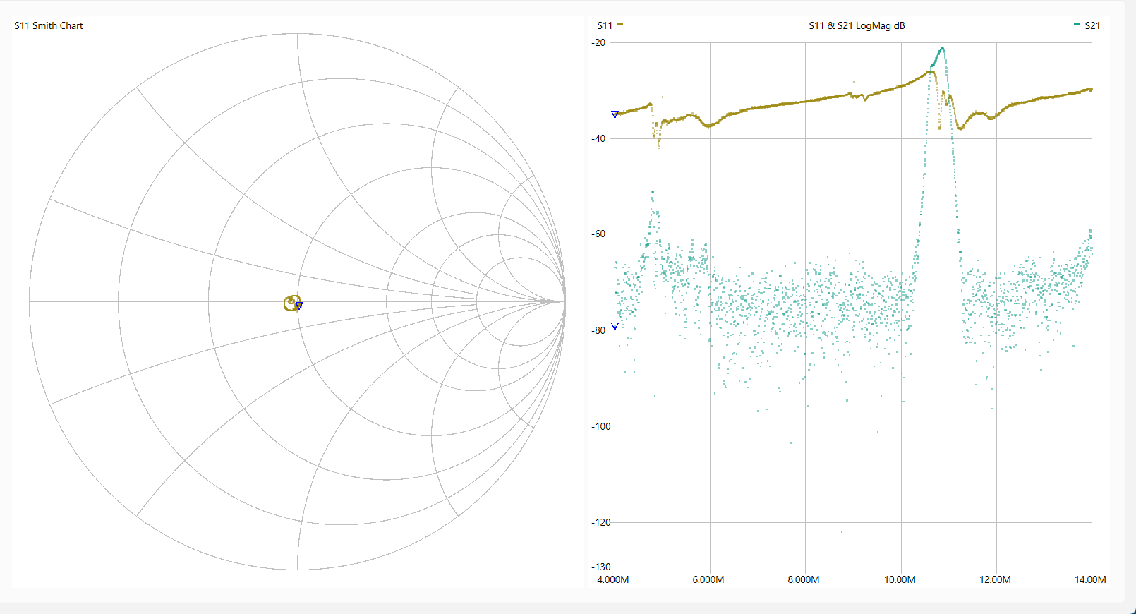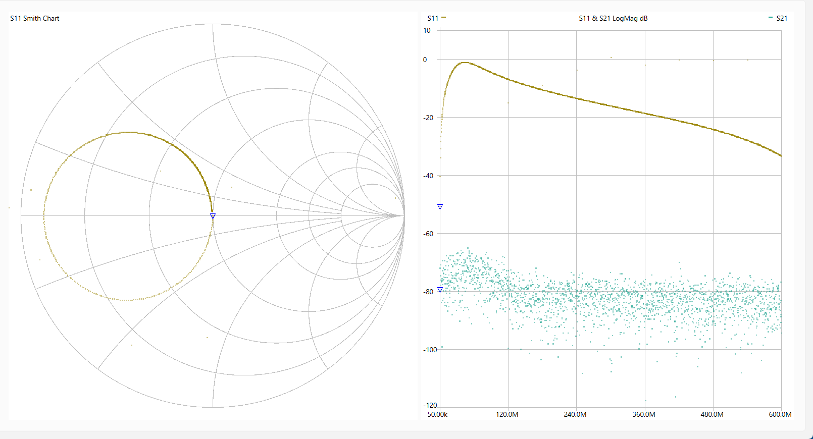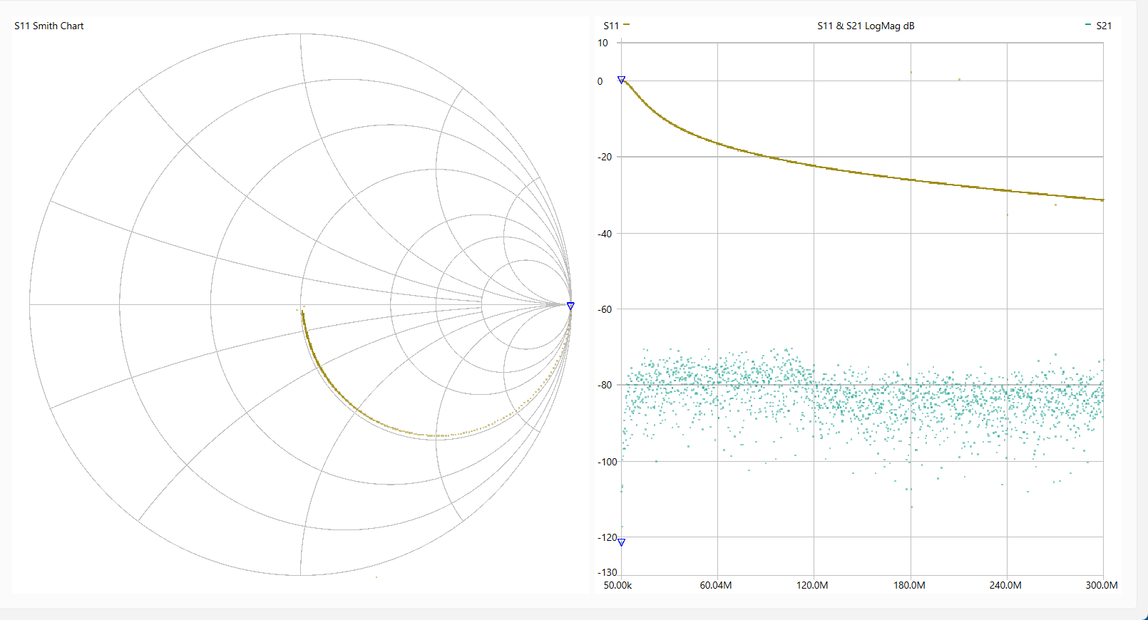 動 作 確 認 「LiteVNA64」を使って各回路を測定しました。 使用ソフトは[NanoVNASaver:0.7.3」を利用し、Segments=10(周波数スパンを10分割して連続スキャン。 今回は最大でも約1MHzステップで測定。)としました。 なお、肝心のキャリブレーションは とても不本意ではありますが本基板のCircuit13(Sort)、Circuit14(Open)、Circuit15(Load)、Circuit16(Through)を利用しました。