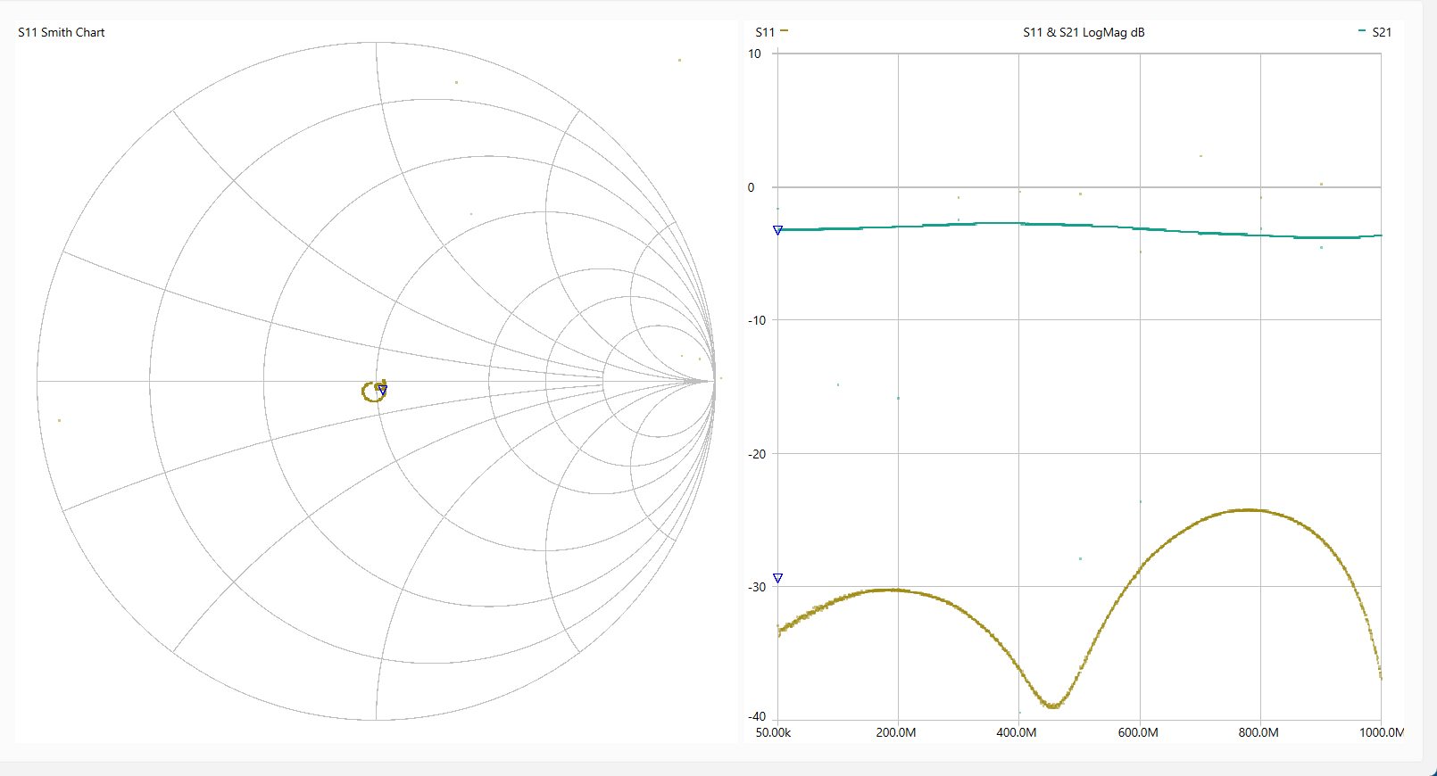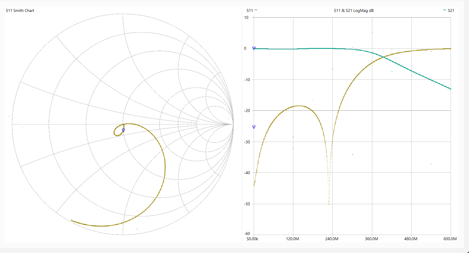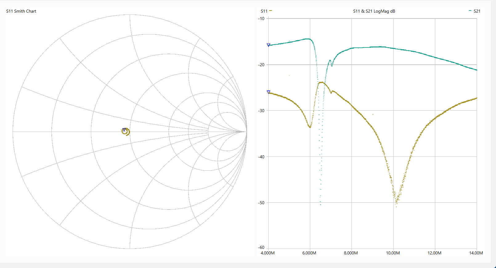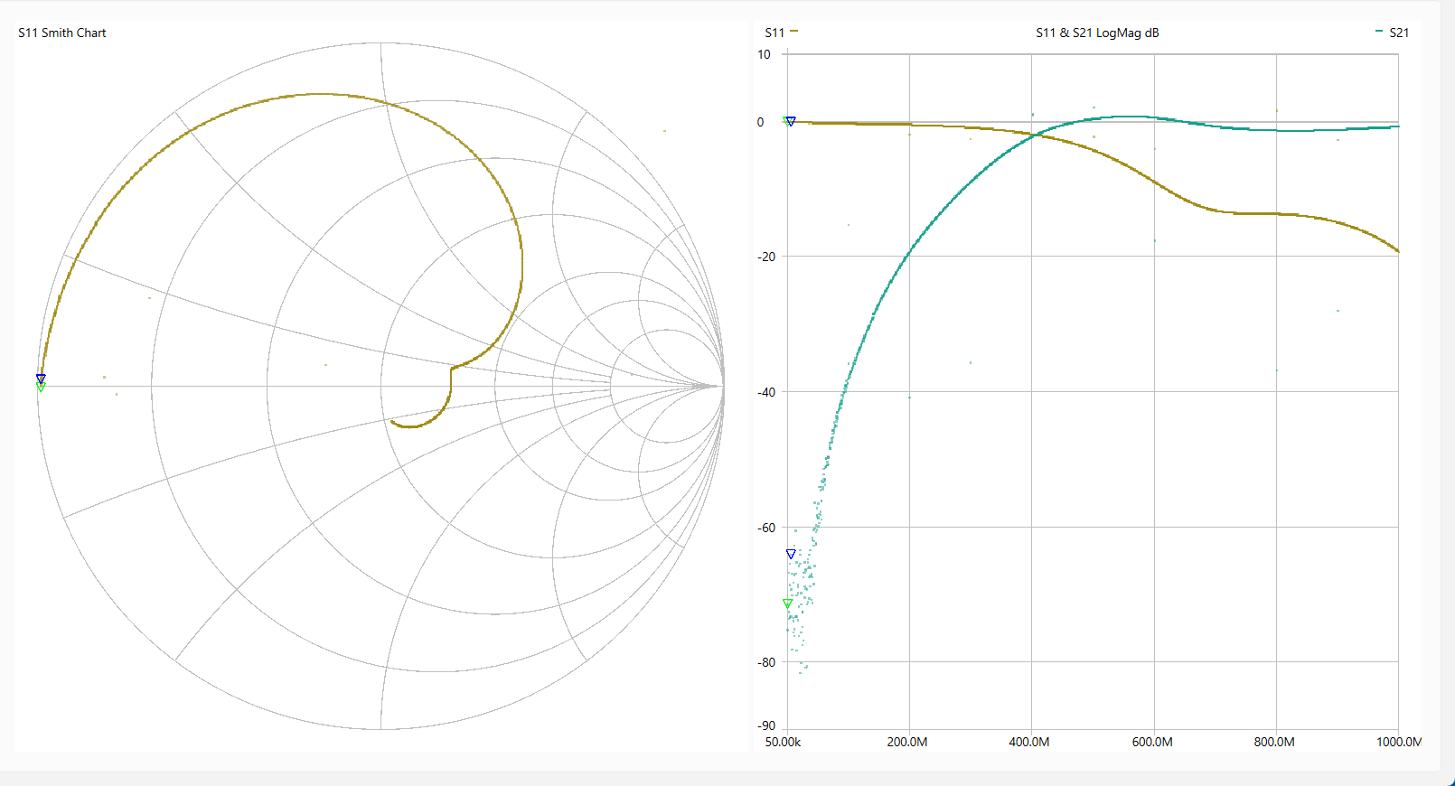 動 作 確 認 「LiteVNA64」を使って各回路を測定しました。 使用ソフトは[NanoVNASaver:0.7.3」を利用し、Segments=10(周波数スパンを10分割して連続スキャン。 今回は最大でも約1MHzステップで測定。)としました。 なお、肝心のキャリブレーションは とても不本意ではありますが本基板のCircuit13(Sort)、Circuit14(Open)、Circuit15(Load)、Circuit16(Through)を利用しました。