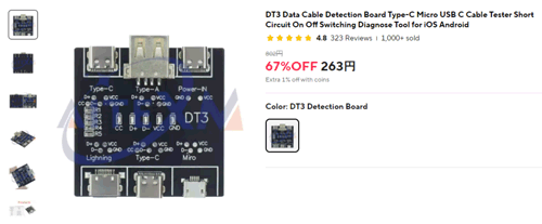 DT3 Data Cable Detection Board Type−C Micro USB C Cable Tester |