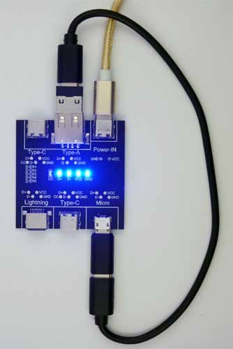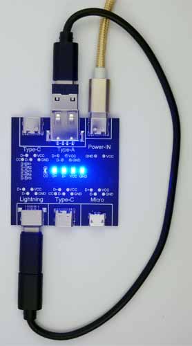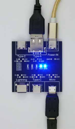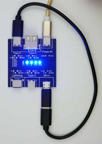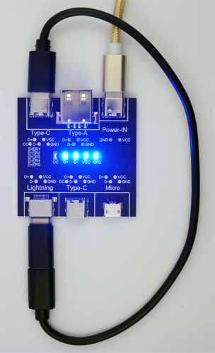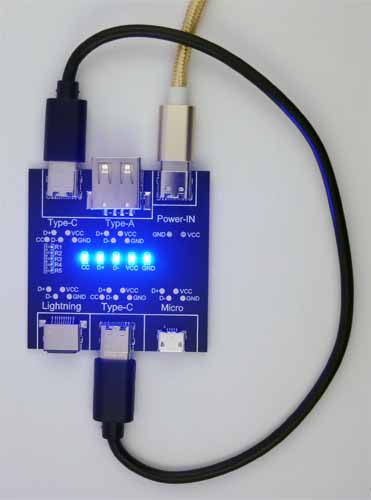 「VCC」「GND」のLEDのみ点灯しました。 【 充電専用ケーブルテスト時 】
