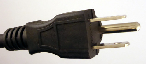 2極コンセントに差し込むことができませんので変換プラグが別途必要になります。 【 本体外観8(入力電源用プラグ) 】