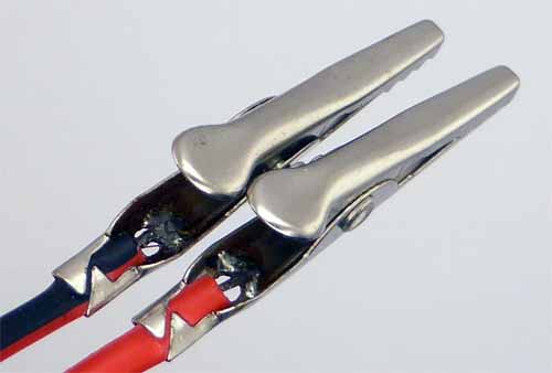 みの虫クリップへの電線はハンダ付けされていました。 【 アクセサリA 充電用電源・電圧計テスタ用電線外観2 】
