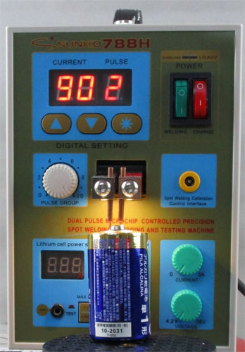 別の電池でスポット溶接をした画像です。 【 スポット溶接例 】