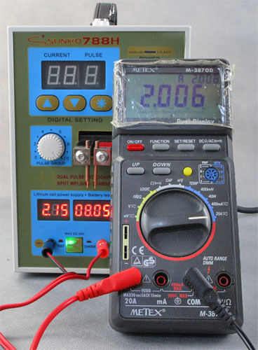 M−3870の電流測定表示は2.006Aでした。 【 電流出力時(出力電流2.15A設定時) 】
