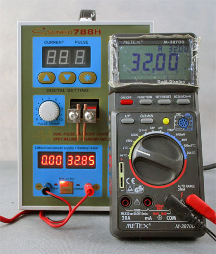 動作確認 (充電装置部) 充電装置部の動作確認を下記に掲載します。 充電用電源の出力電圧、出力電流の確認、電圧確認用の電圧計の確認を下記に掲載しています。 充電用ということでリップルなどの計測は未実施です。