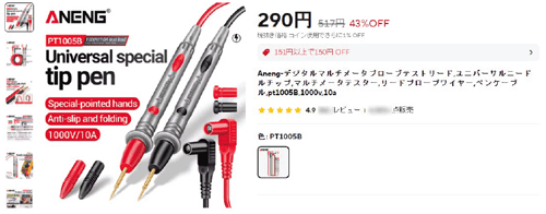 これ以外に、「PT−1005B Test Leads」の先端は針状になっているので、古い乾電池などの表面酸化膜を削って電気的接触を改善することが容易にできました。