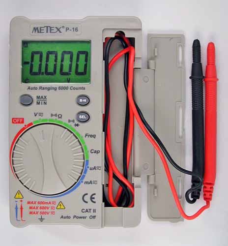 テスター本体はこれ以外にも所有しています。 例えば、フィールドで使用する目的で秋月電子通商版「P−16」を購入しています。 これらのテストリードの先端形状は ハーフピッチ(2mm/100milピッチ)のパターンが安心して使用できる最小間隔でした。 これに対して、今回のPT−1005B Test Leadsの先端は針状となっており、ハーフピッチでも 安心して利用できました。