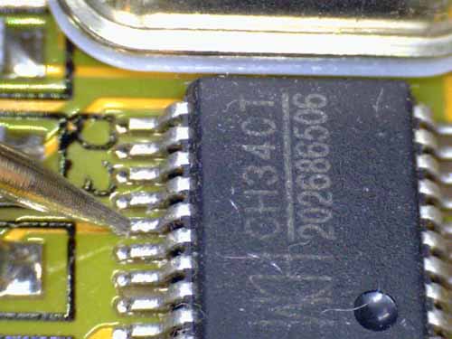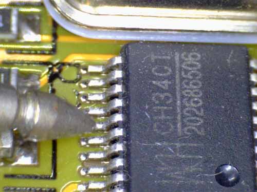 気を付けて接触すれば、どうにか利用できます。 【 1.27mmピッチ接触時(「P−16」テストリード) 】