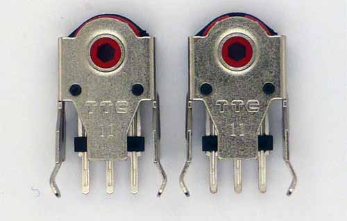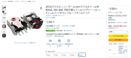 交換用エンコーダをネットで調べると予想以上に多くのショップから販売されているようでした。 価格もピンキリでした。 今回はエンコーダ故障を特定することが主な目的なため、最も安価な商品を選択しました。 今回購入したのはレッド品で、2個で送料税込み150円の商品でした。 この商品は軸の色で販売価格が異なり150円から280円と幅がありますが、色以外の違いは不明です。