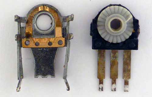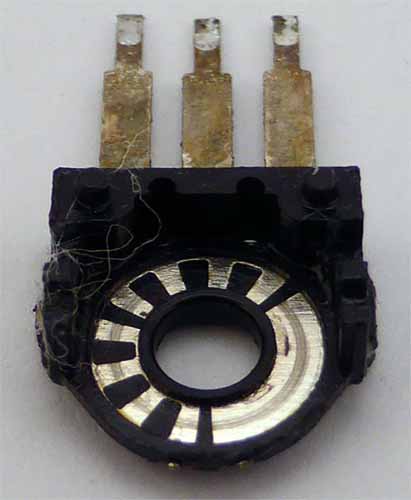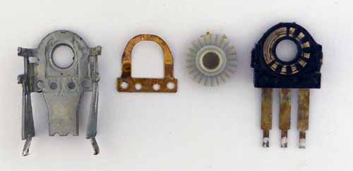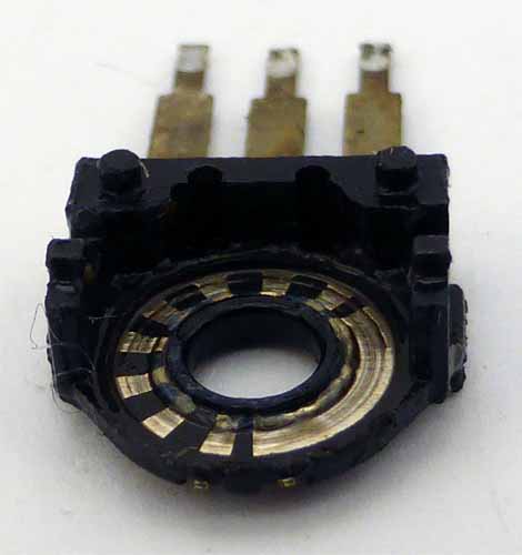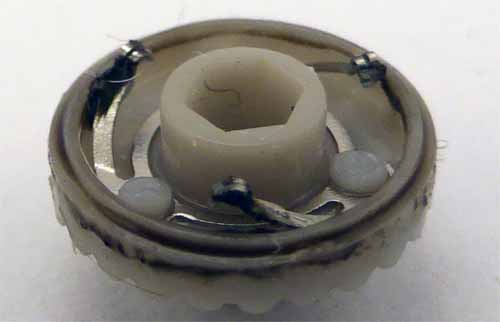 リン青銅と思われる弾性のある金属部品と白色部品のキザキザでホイールのクリック感を作り出しているようです。 |