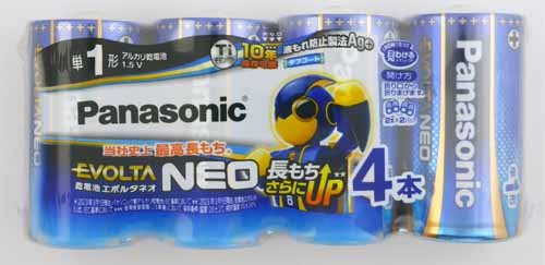 ある日、玄関になぜかともて高価な単一乾電池Panasonic EVOLT NEO 4本セットがありました。 家人に「これはどうしたの?」と聞くと、「懐中電灯の電池がないようなのいで電池を買った。 宣伝でこの電池が長持ちすると言っていたのでEVOLTA NEOを買った」 と、のたまうではありませんか。 こんな高価な乾電池は見たことはあっても手に取った事すらありません。 宣伝の洗脳は怖いもので、電気に疎い家人にEVOLTAの素晴らしさを確信させています。