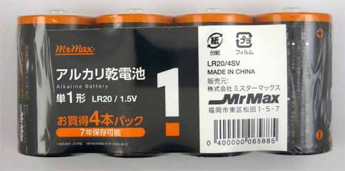 3.4 MrMax(金) アルカリ乾電池 LR20/1.5V [(株)ミスターマックス]