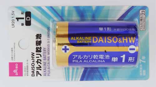 3.9 DAISO&HW アルカリ乾電池 LR20 1.5V [(株)大創産業]