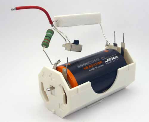 「単1電池ボックス(1本用) Item No:70148」は乾電池の転倒防止のために利用しています。 電気的な接続はありません。 |