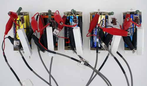 測定回路5組で同時に5種類の乾電池を測定しました。