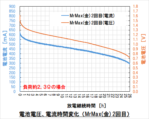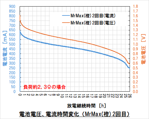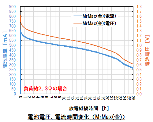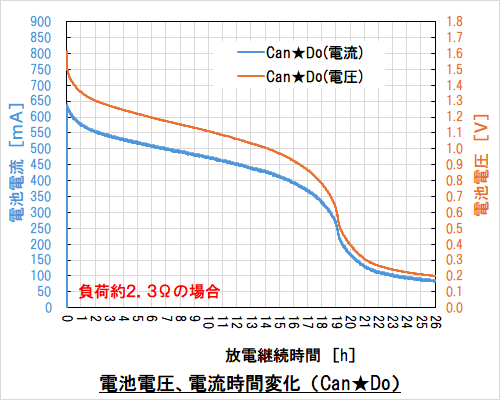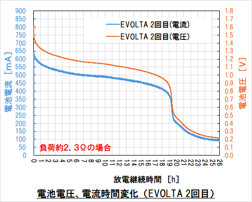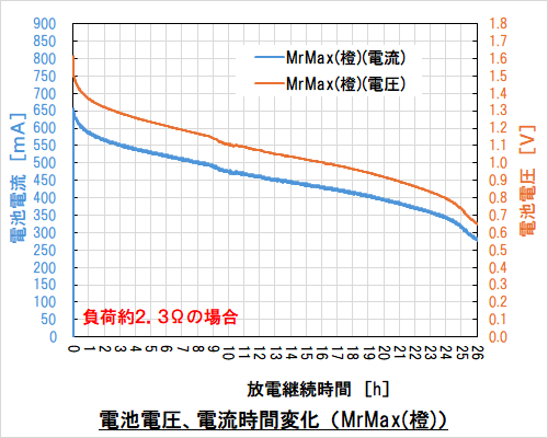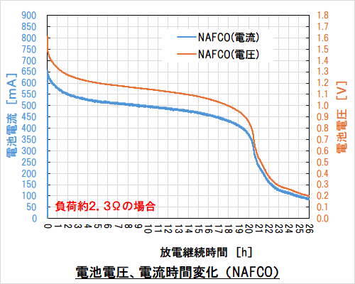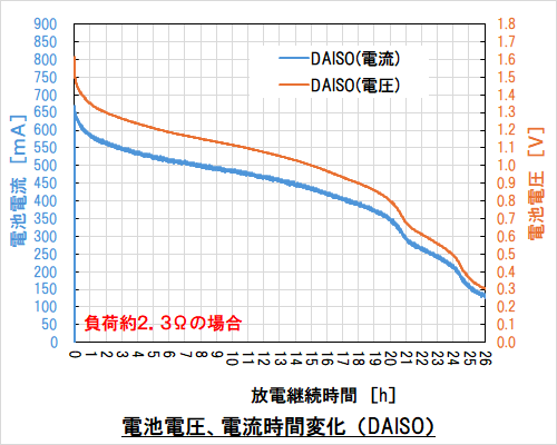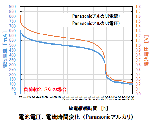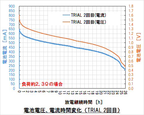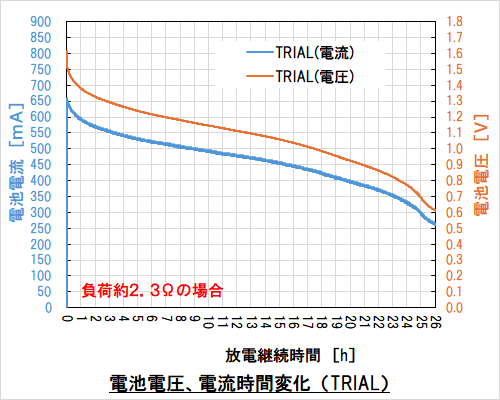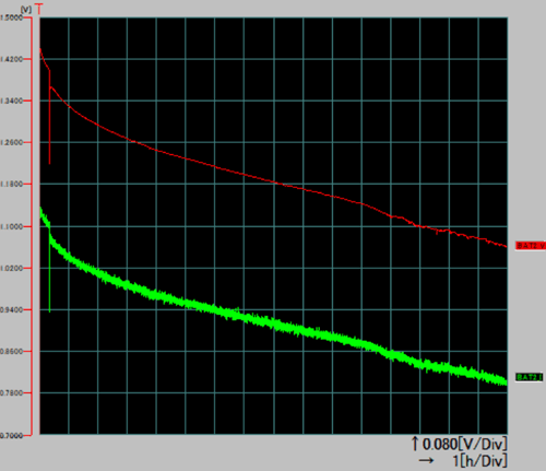 今回の測定方法などは後述の「4.測定方法」「5.あい路」を参照願います。 上記電池の電圧変化の結果を